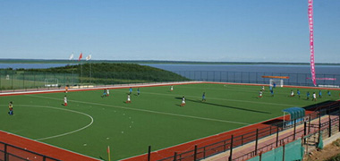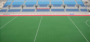 專業(yè)的曲棍球面層鋪裝人造草坪場地平整,良好的保水性,透水性有完整的排水系統(tǒng)