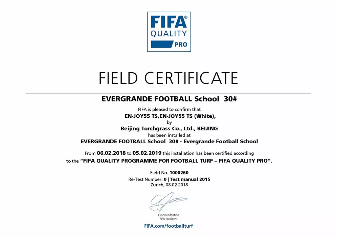 日前,由北京火炬人造草坪鋪設(shè)的廣州恒大足球?qū)W校30#足球場(chǎng),已正式通過(guò)FIFA(國(guó)際足聯(lián))QUALITY PRO級(jí)別場(chǎng)地認(rèn)證。