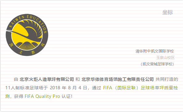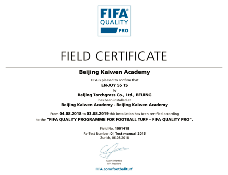 FIFA Quality Pro 是 FIFA國際足聯(lián) 認(rèn)證標(biāo)準(zhǔn)足球場。獲得FIFA Quality Pro認(rèn)證的證書場地?fù)碛谐薪覨IFA級(jí)別賽事的資格。