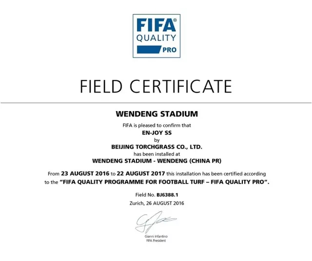 FIFA證書(shū)(文登體育中心)