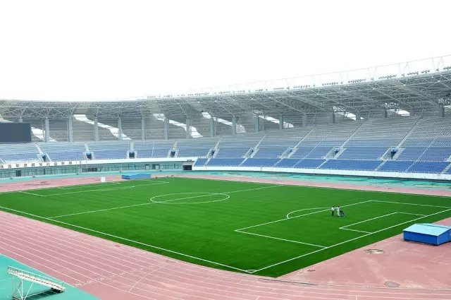 本次文登體育中心足球場(chǎng)地翻新修葺工程,由合作伙伴山東東海塑膠有限公司承接,東海塑膠公司選用來(lái)自北京火炬生產(chǎn)的優(yōu)質(zhì)運(yùn)動(dòng)系人造草坪產(chǎn)品,加以嚴(yán)謹(jǐn)?shù)氖┕すに?,并?yán)格按照國(guó)際足聯(lián)(FIFA)場(chǎng)地系統(tǒng)標(biāo)準(zhǔn)施工鋪設(shè)完成。