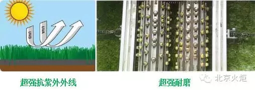 北京火炬采用荷蘭進(jìn)口賽爾隆草絲,草絲加入特殊抗UV成分,抗紫外線、老化、褪色、斷裂。